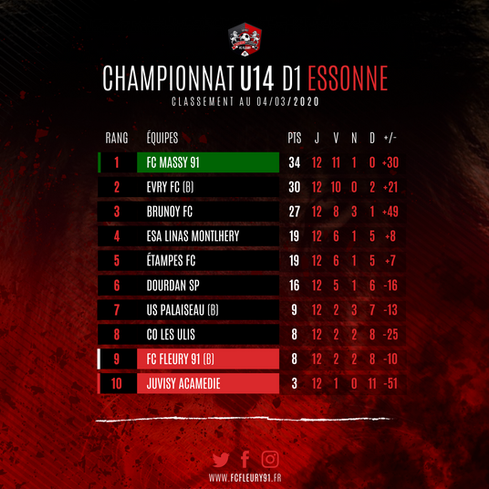 Vous retrouverez les classements de nos quatre équipes en bas de l'article.